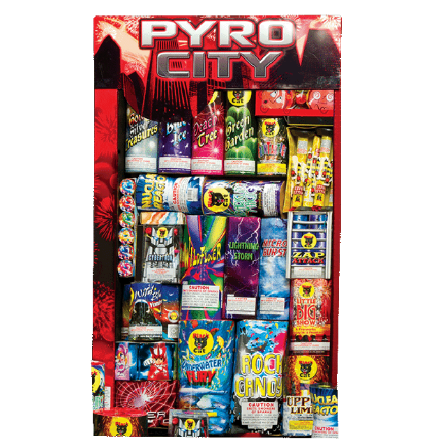 PYRO CITY Full of fountains that pack a brilliant punch, this pack is bursting with display fountains that turn up the excitement! |