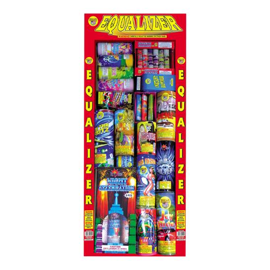 Equalizer is a large, safe & sane assortment loaded with fountains (aside from one box of snap & pops, this assortment has no "filler" product). It contains 8 large fountains, 5 medium fountains, 10 small fountains, 6 reloadable-style fountains, a Exact contents may vary |