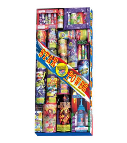 STAR POWER Why settle for less? Make everyone a backyard pyro with these safe and sane fireworks gems. No aerials devices in this assortment. But, lots of excitement for sale. |